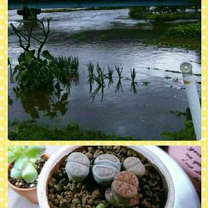やばいwww 大雨の影響で、畑冠水!! 7月終わりにきた台風のときも大雨で畑が冠水し、わたしが住んでる地域は避難勧告が出されました。 その時よりひどいけど…避難勧告は出されていないっぽいです。 自然災害は怖いですね(´・c_・`) いつ何が起こるかわからない!! 下はうちのおけつ組♥リトープス(๑>◡<๑) またひとつ下のほうから裂けてきてる子がいて(^^; また蒸れかな~?でもショボショボはしてないな~と、このまま駄目になるより割って見てみようと皮を裂いてみたら…ちびおけつ登場( ´艸`)♡ でもほんとにほんとに小さい💦 小さすぎてちゃんと大きくなれなそうだけど、植えてあげた(><) 結果、水分過多による身割れではないかな~と判断(´Д`|||) うん、リトープス難しいぞ(;´∀`)