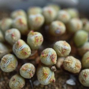 おはようございます😃 こないだアデニウムと一緒に家に来たフリチア プルケラ 光玉✨ 私知らなくてハオルチアかと😅花殻見て違いを認識。メセンの仲間なんですね(*⁰▿⁰*) まだ蕾あるので楽しみ〜😊