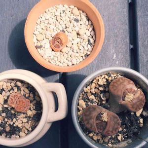 記録のために こっちの鉢のリトープスたちも 投稿しておこう… みんな無事に脱皮できるといいな