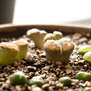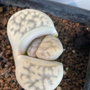リトープス 招福玉 葉焼けが痛々しいですが 脱皮が始まりました! キレイな状態に無事に戻りますように🙏