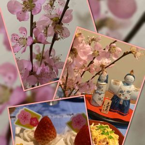 こんばんは😊 今日のお花🌸モモ(花桃)🌸 まるい花弁が開ききってます 🤗 毎年ひな祭りに作る「追い込みちらし寿司 」美味しくてつい食べ過ぎました😋 夫が買ってきたコージーコーナーの男雛、女雛のケーキ🍰は明日のおやつに😁