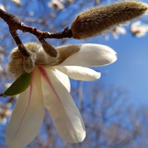 こんにちは😊 今日のお花🌸コブシ🌸 このpicは2年前に撮ったものですが、お花を裏側から覗いたら淡いピンクのラインが入りちょっとキュン💘でした~🥰💗 今日は車で移動中に満開のコブシを沢山見ました🌸🌸 夫は桜が満開だなぁと😳 エッ!桜じゃないでしょどう見ても🤭