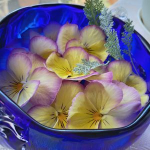 こんにちは😊 今日のお花🌼パンジー🌼 タグ無しのパンジーでしたがよく咲くスミレかな?虹色スミレ? ガラスの器に浮かべても可愛い~ 🥰 昨年2月picより