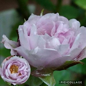 ミニ薔薇アスナロブルー🌹❣️ 6月に投稿した時より色合いが薄く花の大きさが小さいです🌹 雨に濡れてしまって可哀想な事をしました💞