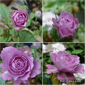 ミニ薔薇 ラベンダー🌹 二日前に蕾だったのが今朝見たら開いていました💞 昨年はグラデーションになってたかな? その時の環境で変わるんですね🌹