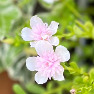 。:°ஐ*。:°ʚポーチュラカ。:°ஐ*。:°ʚ 八重咲きポーチュラカ🌸 優しいピンクの可愛らしいポーチュラカです。 今季ポーチュラカも幾つか育ててますが、猛暑のせいか花数が少なめです。