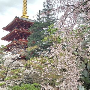 こんばんは😊 今日のお花🌸サクラ🌸 出かけた帰りに立ち寄った高幡不動尊、満開でしたが曇り空が残念 でした😓