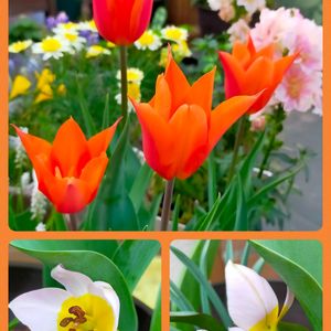 先日投稿したとんがったオレンジのチューリップの子も、並んで咲くと、今日はちょっと優しい雰囲気になって…😆 ⬇のミニチューリップも今日咲きました🌷 こちらは、最初から優しい色で、後ろ姿もかわいい(⑅•͈ᴗ•͈).:*♡ ❀.(*´▽`*)❀.❀.(*´▽`*)❀.
