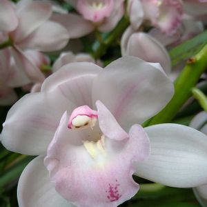 名前の通り皇室の愛子さまを思わせる、優しい色合いのシンビジウム「愛子さま」✨🩷✨ 職場から引き取って、昨年は花茎が1本しか出なかったのですが、今年は9本も出てくれました🎶 ほぼ満開になったので、2階の部屋から玄関に🤗 出入りの度に癒やされています💓