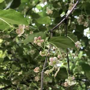 吊花🌳 ツリバナ🌼🌸 散歩道の植栽 揺れる想い身体中感じて〜🌸🌸ツリバナは軽やかに揺れます🫨🫨 朝の散歩6000歩、スイミング500m 午前の予定終了。 散歩道の日陰ベンチで風を見てると葉擦れ音が心好い🤗