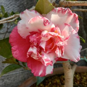 門横のツバキ 今年も開花 ꕤ.·*. 模様が可愛いツバキで真っ赤な庭のツバキより好きなのだけど とにかくこれが咲くとすぐに雨が降るのだ 雨に濡れるとすぐに茶色になって 元が可愛いだけに残念感がすごい そしてやはり今日も雨が降ったのだった……