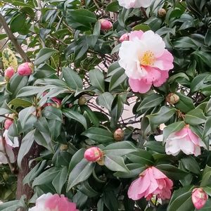 庭のツバキのお花、綺麗に咲き出しました〜可愛らしいです✨🩷💗💕💫