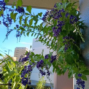 こんばんわ〜🌠 今日も一日お疲れ様でした〜(*ᴗˬᴗ) 今日のベランダ🌿 デュランタ宝塚も頑張って咲き出しました💜 挿し木のデュランタさんは枯れてしまいましたが😅親株さんは元気〜(≧∇≦)///♬♪♡ ちょっと風に吹かれてピント合わないですが〜💦💦💦 お花少ないベランダとっても嬉しいですね〜〜〜╰(*´︶`*)╯♡ 🔖とにかくGS楽しもう! up出来ると嬉しいですね〜🥰 ⋆*:."•*¨*•.¸¸♬🌟*•*¨*•.¸¸♬*💜