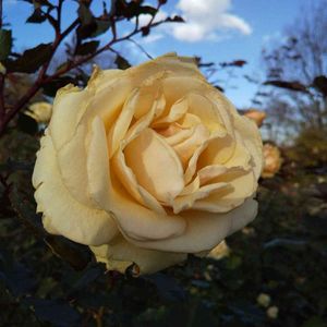 智光山公園 バラ シリーズ その ⑰ 「シンプリーヘブン」 《花色は杏色から白色 花茎12cm 微香。シンプリーヘブンと名付けたのは まるで「天国のような美しさ」を表現した薔薇だからそうです》(説明文より) 12/15撮影 今回で バラ シリーズは 終了です