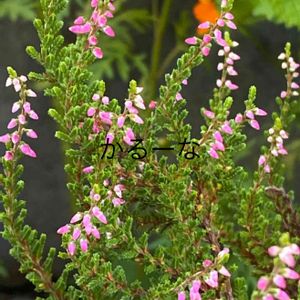 可愛い花は、カルーナ、ブルガリスです❣️ 秋に寄せ植えで植えた大きな鉢の中で、 小さくても、存在感主張してます‼️