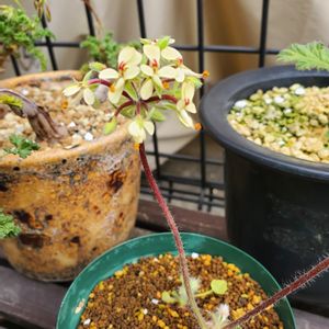 家に買えると、受粉作業が待っている。 アルテルナンスの種子鞘が10本立っていて、他の品種より熟成がやや早いので、気が抜けません😅 今朝外で一鞘取り逃して一粒しか確保できず、飛んでいってしまいました。 ペラルゴニウム数種とモンソニア エマルギナータが、絶賛開花中❗ 忙しいです😂