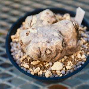 "Operculicarya pachypus" 昼からサボテンの子株を外して終了する予定でしたが… 酒が入った勢いで来月に予定していたパキプス親分を植え替えました✨ 右のポット、ちと、不安定😅