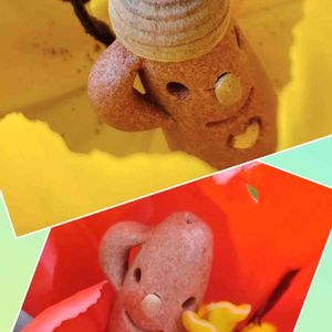 【チューリップの中から】 おはようございます 今日は28日 ハニワくんです うちのチューリップ まだ咲いているのはあるけど、ゆんさんに前撮りしてもらいました。 ポスター風に二枚も✌ とやまレッドと黄小町の中に入って気持ち良かったよ。 ボクの胸のキラキラが花の色に染まるのも久しぶり✨✨✨✨✨ あっ、それからアタマがツルツルなので帽子を着用。意外と似合っているかも💕 来月はどの植物で会えるかな。 またね ハニワくんより ☆みちゃさんのハニワの日に参加します