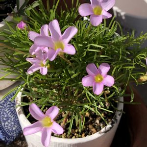 おはようございます☀️ 風が強いです🍃🍂 今朝のお花は 今日のお花 オキザリス🌸 ペンタフィラ お日様に当てて🔅🔆 やっと少しだけ開いてきました✨ 昨年お迎えした可愛いお花のオキザリス 直ぐお花が終わってしまい放置😅 芽が出てきたので ビオラの鉢に加えてみました😊 こんなに花茎長くはなかった記憶が…🤔 明日には可愛い顔が見られそうです💕