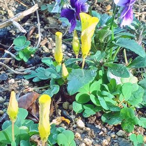 紫色のビオラさんを植えた後ろから 黄色のオキザリスさんが顔を出しました くるくる蕾が可愛いです 🍋ꔛ(*ˊᵕˋ*)ꔛ🍋