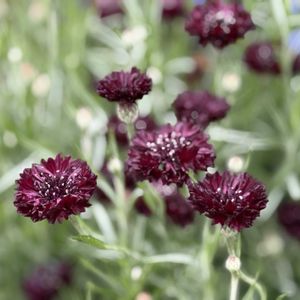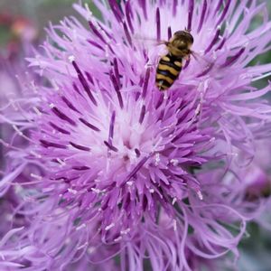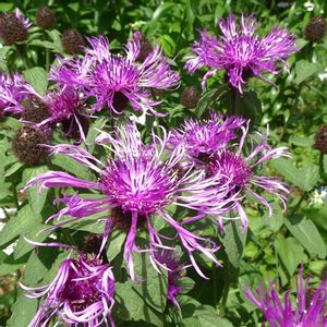 セントーレア ブラックボーイ 今春にお迎えしたセントーレア 色んな花色の苗がありましたが この紫をチョイス とても素敵な色で咲きましたが よく調べないで植え付け 背丈がすごく伸びてお花の重みで倒れて ヒモでとめてもなんだか不恰好で💦