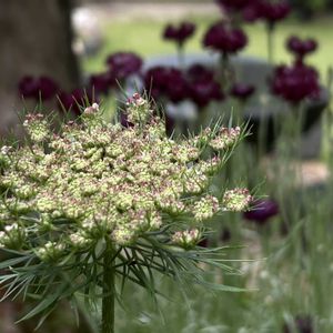 ブラックレースフラワー (ダウガスダーラ) 大好きなお花がもうすぐ開花 わくわく🎶 後ろに見えるはセントーレア(ヤグルマギク)