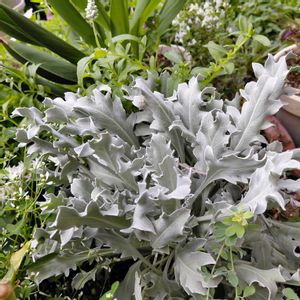 ふわふわの セントーレア シルバーフェザー💜 シルバーリーフが美しい~✨ 今年も咲いてます♪