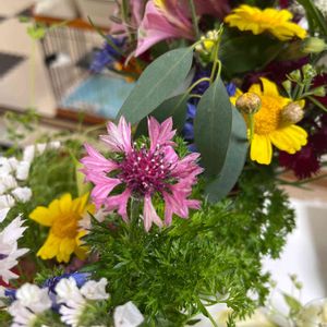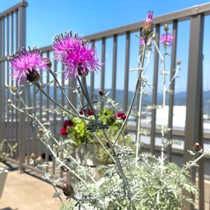 ルーフバルコニーで育てている、セントーレアがたくさん咲いてきました。 しかし連日の強風…外で咲かせておくのも忍びなく、咲いてる花だけカットしてベランダの草花と一緒に飾りました。 真ん中上の花、ちょっと色味が違うでしょ?コレは先週折れた蕾を室内で咲かせたもの。洗面室で咲かせたせいか、ピンクになり切らず。でも品種違いのようで、コレも可愛いらしい💕 セントーレア/ロータスブリムストーン/ オレガノ/ラムズイヤー/シレネ/タイム/ アルメリア/グレコマ