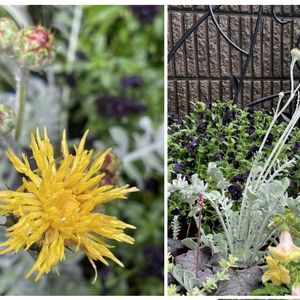 セントーレア キャディディッシマ タグ🏷️が無くなりわからなかった花が咲き検索して漸く判明。 シルバーリーフが気に入ってお迎えしたのは昨年の春かな? 小さな葉っぱ🌿だったのに随分立派になり、花も黄色だけどアザミみたいな形。