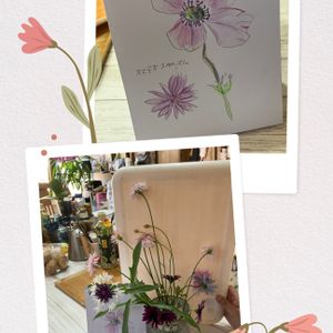らんまんに触発されて、奥様花の絵が描きたいと… 庭からテキトーにとって、花瓶にさしました