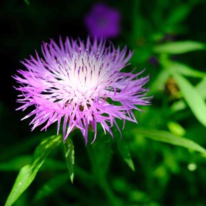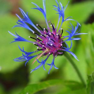 セントーレアの鮮やかな花芯を覗き込んだら かぶりつきで見ている小さな先客が。