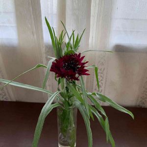 庭に咲いていたのですが、背丈が1メートル以上で花が咲いたのですが首がもたげてしまっていたので、切って生けました。 花の名前がわからないのですが、よろしくお願いいたします。