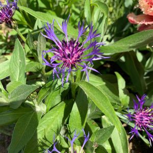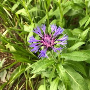Centaurea montana ‘Purple Heart’ セントーレア パープルハート かっこいい…🥹 ヤグルマギクの仲間ですが、 草丈は20cm弱ほど 花径は7cmくらい 鉢栽培で夏は風通しのいい半日陰、 鉢底には観葉植物用の粒状培養土を入れて水はけよくしました 雨に当てなければ、花が結構長持ちします 大好きな花のひとつです🤩🤗 フレンチラベンダー シモツケ ゴールドフレーム カタバミ オニタビラコ(?)と📸