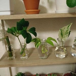 水挿し発根待ちのコ達🍀 随分減りましたが、実家に戻ると増えるという謎ループ笑 根無しっ子はやっぱ可愛いんよねぇ❤