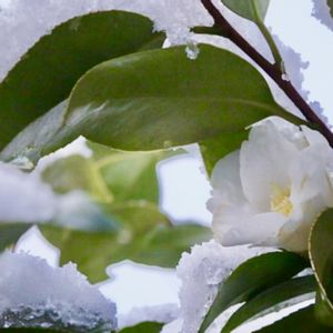 ♡¨̮॰*✩あけましておめでとうございます✩*॰¨̮♡ 笑顔溢れる穏やかな一年になりますように☆ 今年もどうぞよろしくお願いします(୨୧•͈ᴗ•͈)◞ お正月🎍田舎の叔父のお庭に雪.。.:*❄️ 寒さにも負けず咲いていたワビスケさん 美しかったなぁ(o˘◡︎˘o)