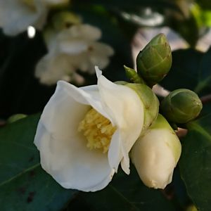 実家に咲いてた侘助 まだ蕾ですが、清楚な美しさにうっとり
