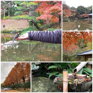平塚総合公園の紅葉🍁 庭園に山雀が手のひらに来てくれました😍