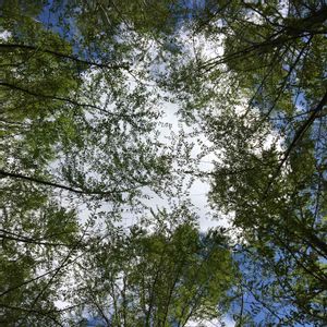 雲をバックにメタセコイヤの葉の模様がきれい🌿