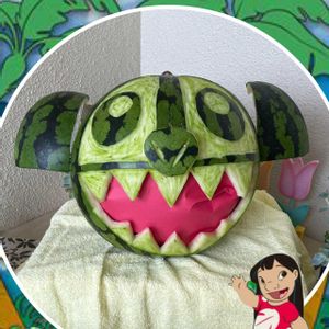 西瓜を頂いたので、 スイカアート、彫刻刀で彫ってみました。中身は、食べちゃいましたよ。 どうですか?スティッチに見えますか? そしてここでも🏷️にぃさんの日 参加させて頂きます。2枚目に載せてみました😊