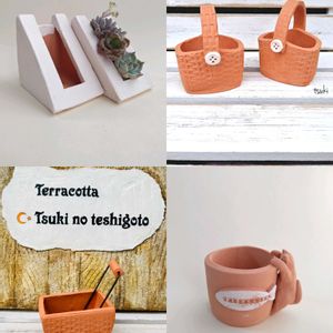 今日、窯出ししたテラコッタ鉢です。 横長の壁のバルコニー鉢。 窓辺には1cmほどの小さな植木鉢を飾りました。 明後日からの出店にギリ間に合いました〜😂 10月8日(水)から14日(火)まで 玉川高島屋本館5階 [miiwa succulent]さんのpopupshopで作品販売させていただきます。 出店メンバー miiwa succulent さん 多肉植物の寄せ植え作品 多肉苗、ガーデン雑貨等 aiko さん リメ鉢、リメ缶等 sako さん 木工作品、ガーデン雑貨等 yuuuuuさん リメ鉢、リメ缶等 そして私 月の手しごと は テラコッタ鉢、テラコッタ雑貨等 皆さまぜひお立ち寄りくださいませ。