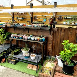 鉢を叩き割り粘土をコネコネしチマチマ作る事1ヶ月 やっと本日寄せ植えできた😆 これを維持する腕はないけどねw