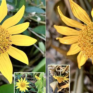 今年の最後の月もあと僅か。私の散歩道の道際等の草花達は、晩秋から「冬」へ時期にあってもしっかりと息吹いている--- 11月からの、進む時候の移りに観る草花の姿、姿---その16。 12月に観る、遅咲きのルドベキア(マツカサギク)なのであろうか。 ---この時季に、ふと目に止まった真っ黄色の花、ヒマワリを小さくしたキク科の花だ。それは、散歩道の道際のあるレストランの前の、草花を寂しくしているオープンガーデンの一風景であった。 その黄色の草花、確かに時期外れの遅咲きのキク科だと思いつつも、しばらく置いてまた2週間ほどにその場所へ。そこにはその黄色の花が、花弁をよじらせて褐色に変容して、大きな松笠のような花芯を持って首(こうべ)を垂れていた。 ・ルドベキア<マツカサギク<松笠菊>>(キク科) 北アメリカが原産。黄色い花を咲かせる。別名マツカサギクと呼ばれ、花が終わると花芯が円柱状に伸びてまるで松かさのように見えることから名づけられた。いずれも丈夫で育てやすく花期も長いので群植すると見ごたえがある ルドベキアは「オオハンゴンソウ(大反魂草)」「コーンフラワー」「花笠菊(はながさぎく)」「松笠菊(まつかさぎく)」などとも呼ばれている。 →ルドベキアの種類 ルドベキアは小輪、大輪、一重、八重などのバラエティーに富んだ黄色やオレンジ色の花を咲かせる。品種改良がおこなわれ、通常の一重咲きのほかに蛇の目咲きや二重咲き、八重咲きがあるほか花色も黄色だけでなく橙色や褐色などがある。 花壇ではヒルタ種が多く使われ、グラウンドカバーにはフルギダ種が使われることが多い。 →ルドベキアの花 ルドベキアは、6~10cmほどで、花びらは黄色で中央の花芯は緑や茶色をしていて、中央の花芯が大きく盛り上がったヒマワリに似た花を咲かせる。 一重咲きや八重咲きなどの種類があり、花色は黄色だけでなく赤やオレンジ、橙色、褐色などがある。 花期は6月~10月 (出典・参考; LOVEGREEN)
