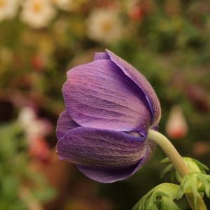 出て来たばかりのアネモネの蕾をそっと見守っている様