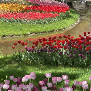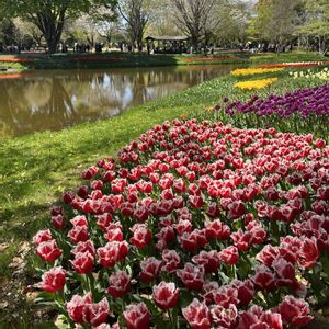 国営昭和記念公園にて 池にチューリップ🌷が反射して 美しい😍