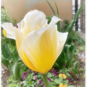 黄色のチューリップの白い縁取り とても綺麗です💛
