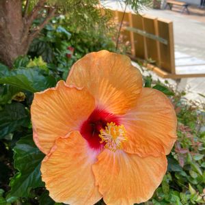朝から 暑い🥵ですが この間 お迎えしたハイビスカス🌺 小ちゃな苗🌱なのに大きな花を見せてくれました😁🌺