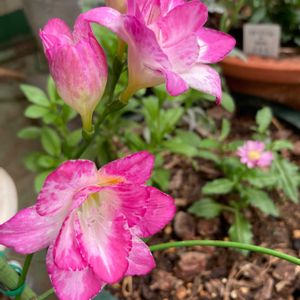 ピンク色のフリージアは 去年と違う柄みたいです🤔でもかわいいから良いか。❀ 𓂃𓈒𓏸⸝⸝ᵕ·̮ ᵕ⸝⸝