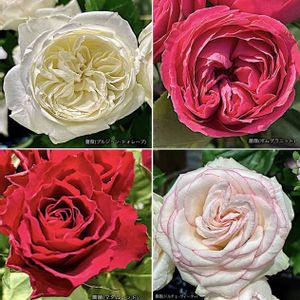 新たな年の、1月。この地にあっても、冬の時期が強く感じられる時節になって来ていると言っていいでしょう。 フラワーショップの店頭に置かれる草花の色取りは、新年を祝い賑やかにしている。 昨年12月からの店頭で観るバラ、そのバラエティ---その1。 ----切りバラも一層、店頭を賑わしている。 複色(混色)系x1、ピンク系x1、赤系x1、紫系x1のバラ、4つ。 ・薔薇(リメンブランス) 花弁、外側から花芯に向かうまで、先が尖った剣弁高芯咲き。 マゼンタ、ライラックの混ざったピンクが、外側へ淡いグラデーションになって完結している。清々しいバラだ。 花名「リメンブランス」は、恋などの‘追憶’なるをこのバラに託するということだろうか。 ・薔薇(ヤギパープル) 深いピンクパープル色のウェーブがかった花びらが幾重にも重なるロゼッタ咲きのバラ。 花弁に少しフリルが入り、ひらたく咲いていく姿が美しい姿が特徴的。 中心にいくほど濃い赤紫から淡い花色に変じている。 花名「ヤギパープル」、‘やぎバラ育種農園で作出されたパープル色のバラ’で個性的なバラのひとつでしょう。 ・薔薇(マダムレッド) 落ち着きのある赤紫、マゼンダの素敵な色合いを持つバラ。小さなスプレー咲きのカップ咲きからの半剣弁のロゼッタ咲きのバラとみようか。 花びらのエッジが小刻みに震えているようなフリルがエレガントである。 花名「マダムレッド」、何か、‘有閑夫人の落ちついた赤い衣装‘を想像させようか。 ・薔薇(ミスティレイン) 薄い赤紫の花弁が、花芯に向かって緩かにして、急速に花弁を密にして、その紫色増している丸弁的な半剣弁高芯咲き。 淡く多少の、はかなさをおもわせる花色の中に、清楚感みたいなもを感じさせている。 花名の「ミスティレイン」は、‘霧雨とかこぬか雨’の意。多少のはかなさや清楚感もつをそれになぞらえたのだろう。