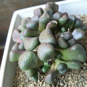 ゴツゴツした塊が沢山 アロイノプシス スクーネーシー(唐扇) お買い物に行った時に催事場で 私を見てた子(笑) 悩みに悩んで 連れて帰りました。 催事場では 丁度他のアロイノプシス達はお花を咲かせていました。 お花の子を連れて帰るのも良かったけど まだ蕾の子を連れて帰って来ました。 店員さんは「1週間もしたら花が咲くと思いますよ」と言っていたのを信じよう アロイノプシス スクーネーシー(唐扇)の花は午後の3時頃から咲き始め6時頃までには花が閉じてしまうお花と聞かされました。 これまた不思議ちゃん 早く咲くのみたいなぁ