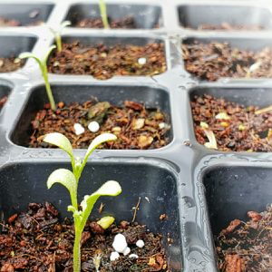 サルビアの芽ちゃん🌱✨ サルビアは発芽気温が高いこともあり、衣装ケース温室でもなかなか発芽率が🥺 また3月に追加播きします😅